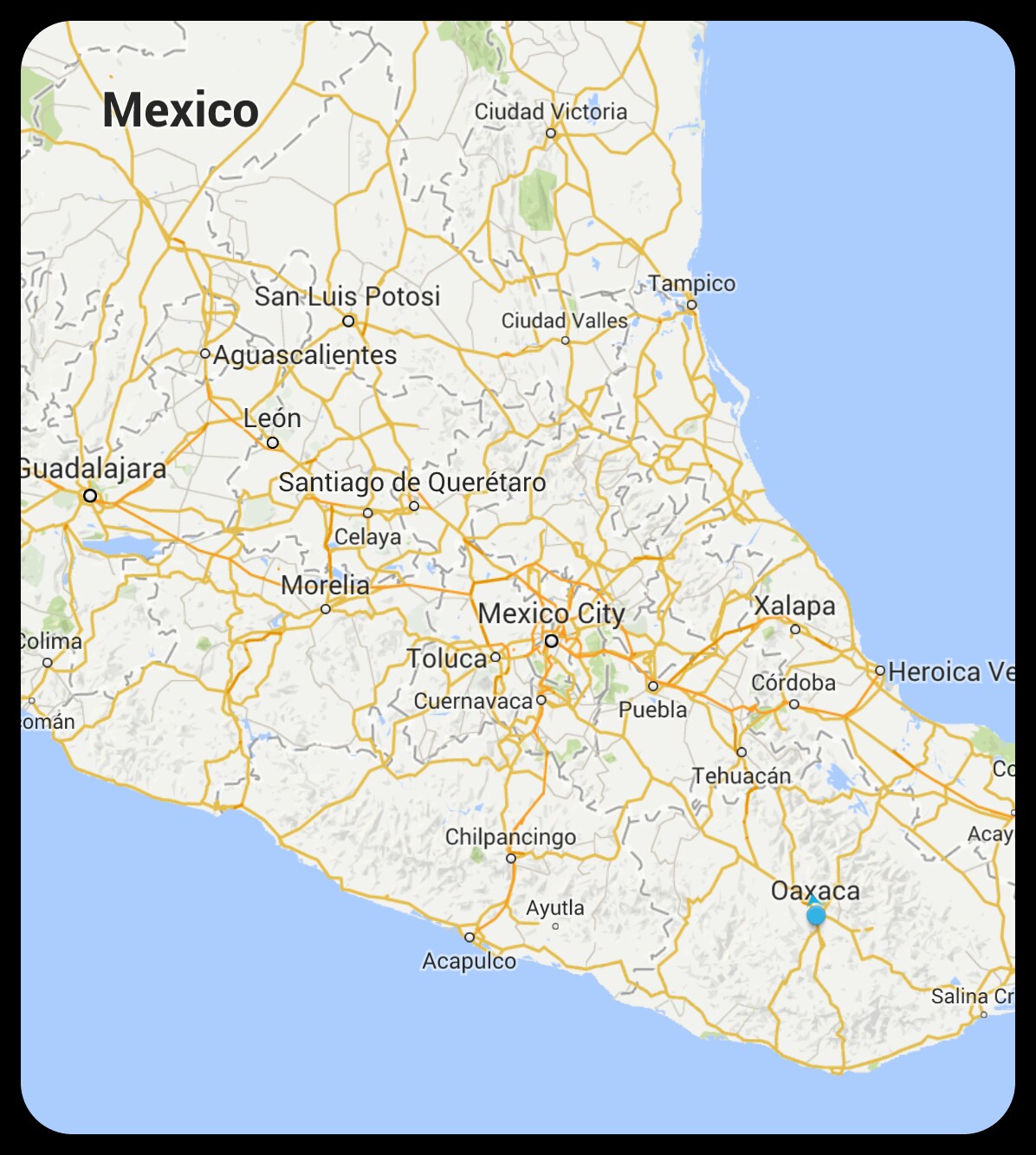 The Oaxaca to San Cristobal route is bounded on both sides by mountains. First, descend from Oaxaca City down to the coast, exiting the Sierra Madre Sur mountain range. Cue heat and hammock country.