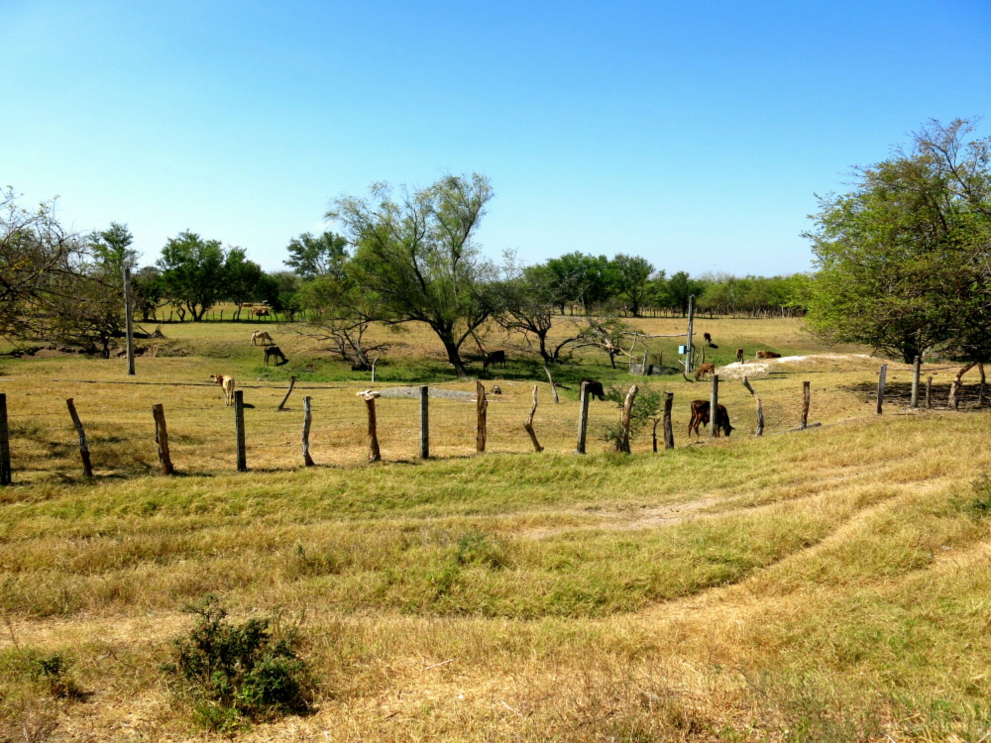 Mountainous treetops to dry lowlands, where shade has even higher value. Note background windmills- a cautionary sign for cyclists, and even drivers here. Winds sometimes blow strongly enough to toss over tractor-trailers.