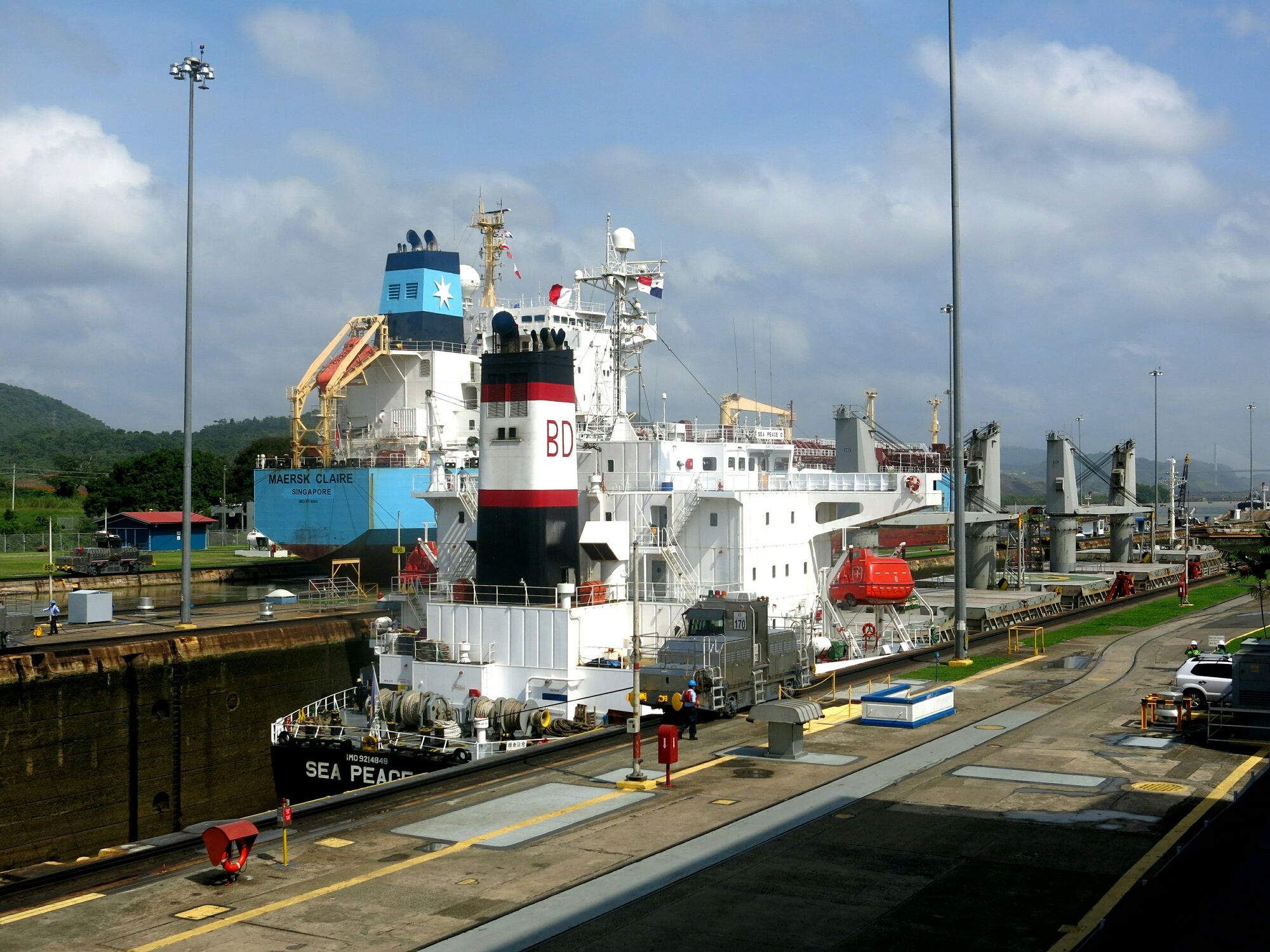 Right outside Panama City, the Miraflores locks equalize the water level before ships exit to the Pacific Ocean.