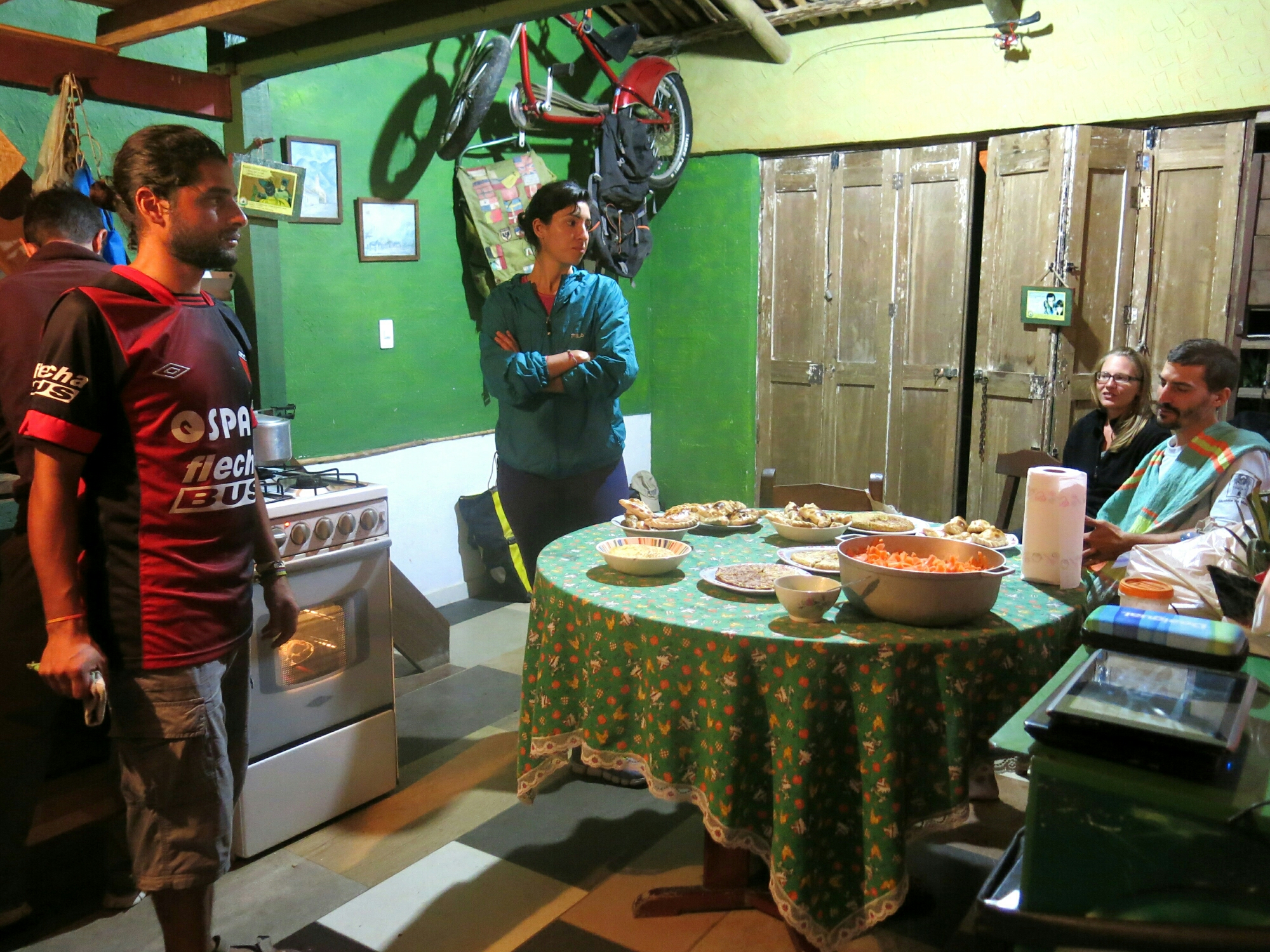 Where cyclists gather, food gathers too. The Argentineans make empanadas.