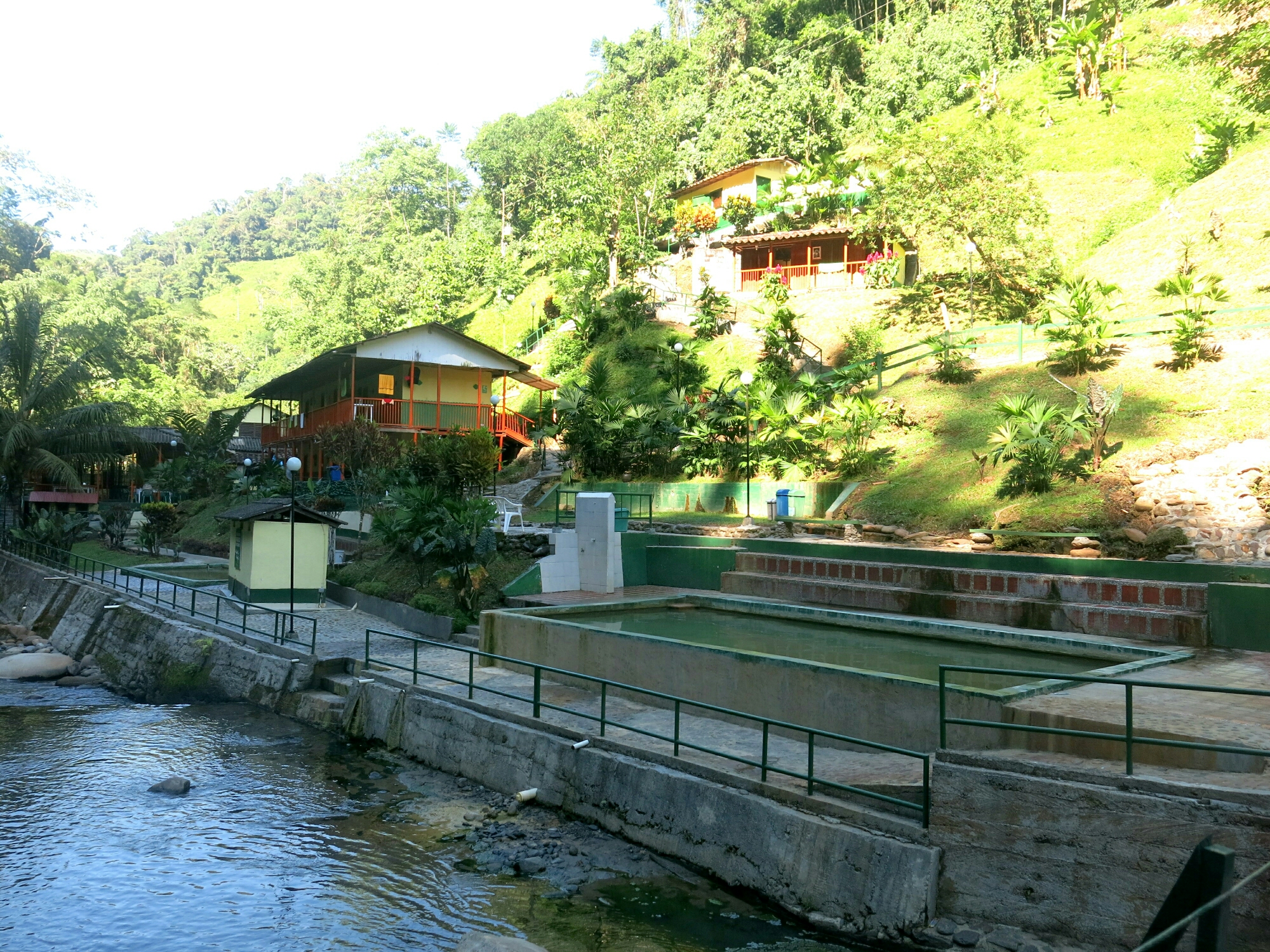 Past Nariño, here it gets interesting. The asphalt road gets replaced by more or less one long rock garden, 12km descending to the hot springs Espiritu Santo, by which point a warm soaking is a welcome relief from bouncing down to the bottom of the valley. Just rest well, because now you have to climb back out, ~35km to Florencia. The dirt continues past Florencia for a ways, then back to asphalt, but essentially you descend from Florencia down to the plain before climbing up to Bogotá. 500m above sea level is quite warm, above 1500m is cool, Bogotá everyone says is very cold (sometimes true), but going from one temperature range to another in the same day is very common so who knows where you’ll end up.