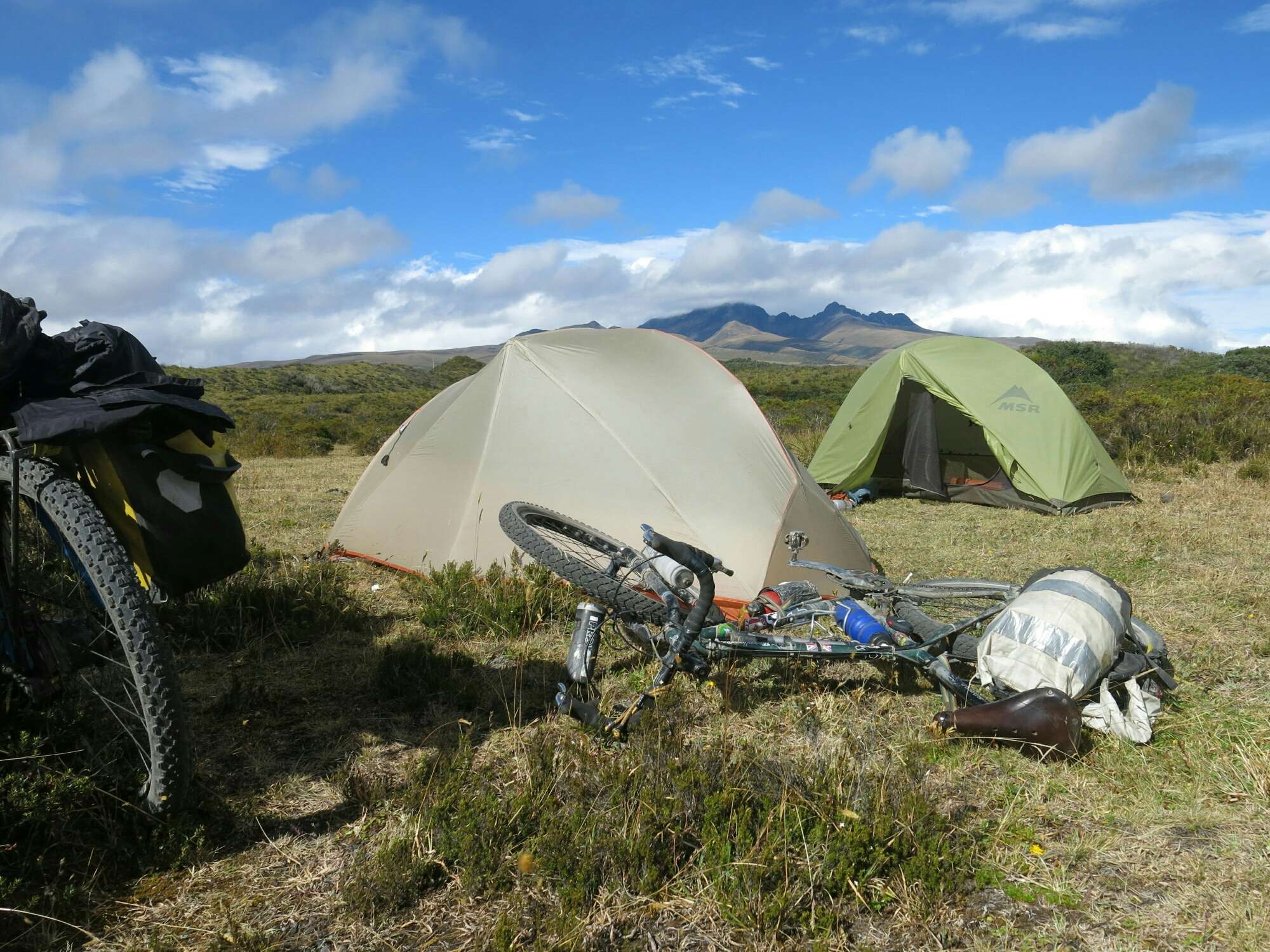 At the intersection, we took the paved road direct to Riobamba. This loops around the side of Chimborazo, and while the dirt track was likely more interesting, we had barely enough food for one more night and were physically exhausted from the last week and a half and the race. Was a hard last few kilometers to the info center, where the guys stationed there let us sleep on the floor inside for the night.