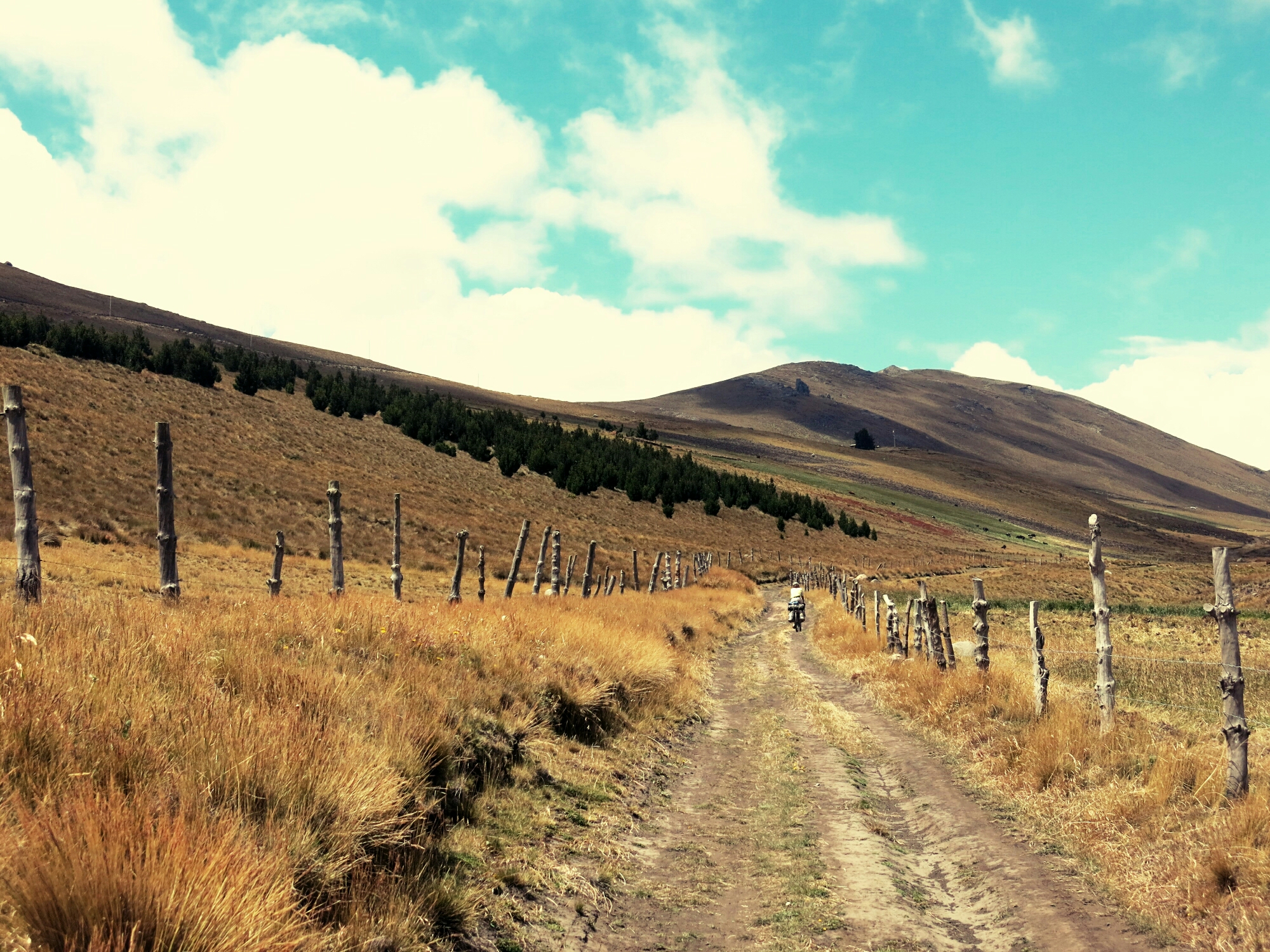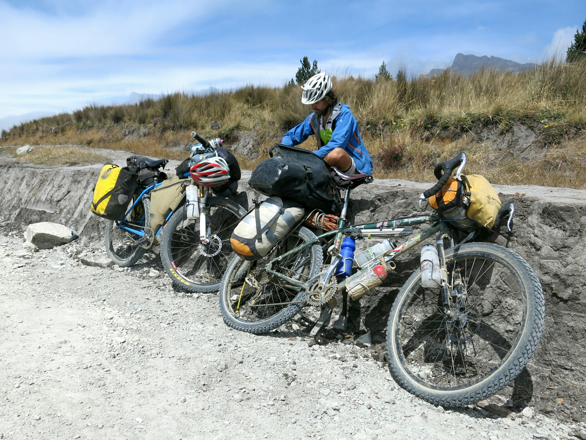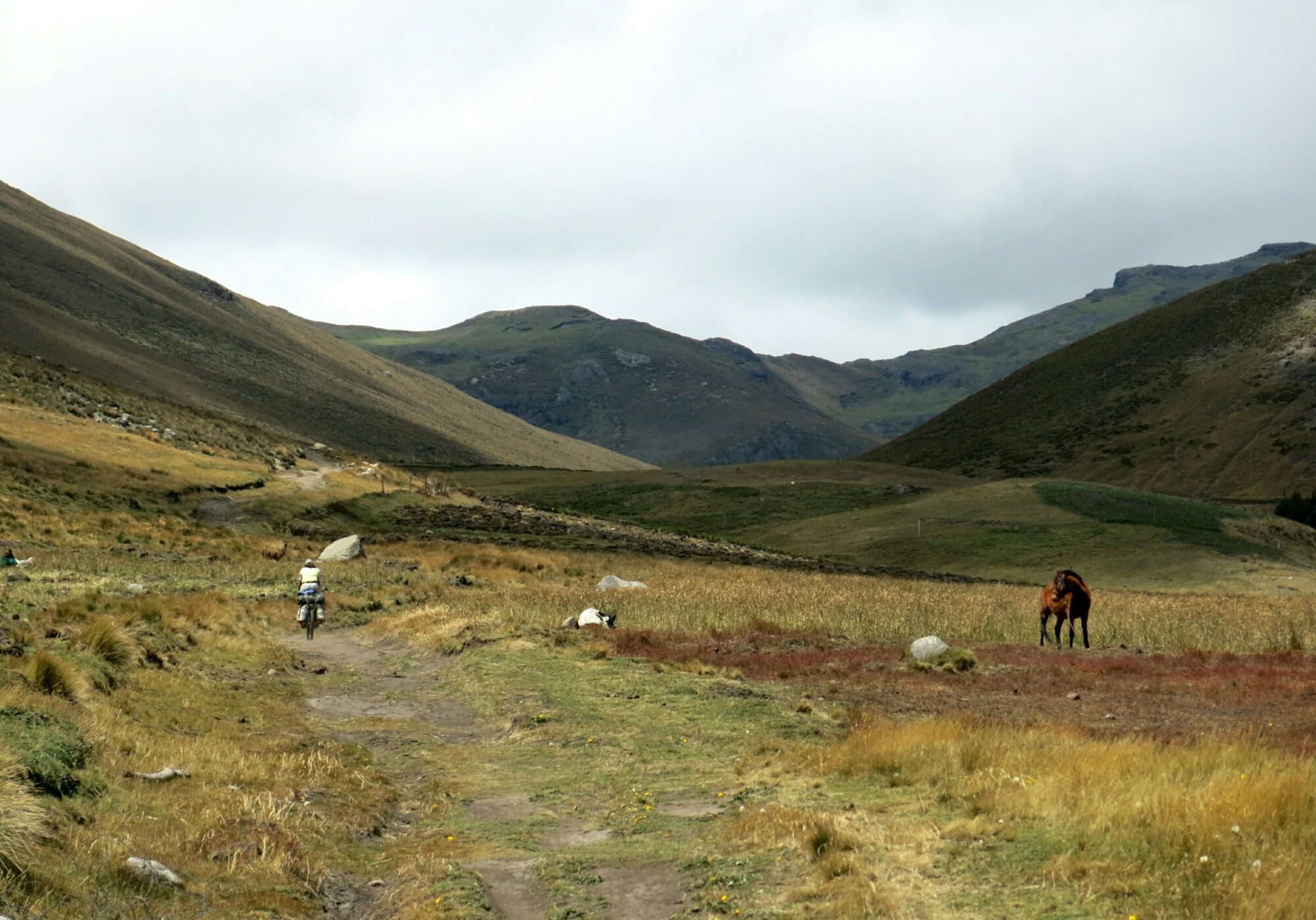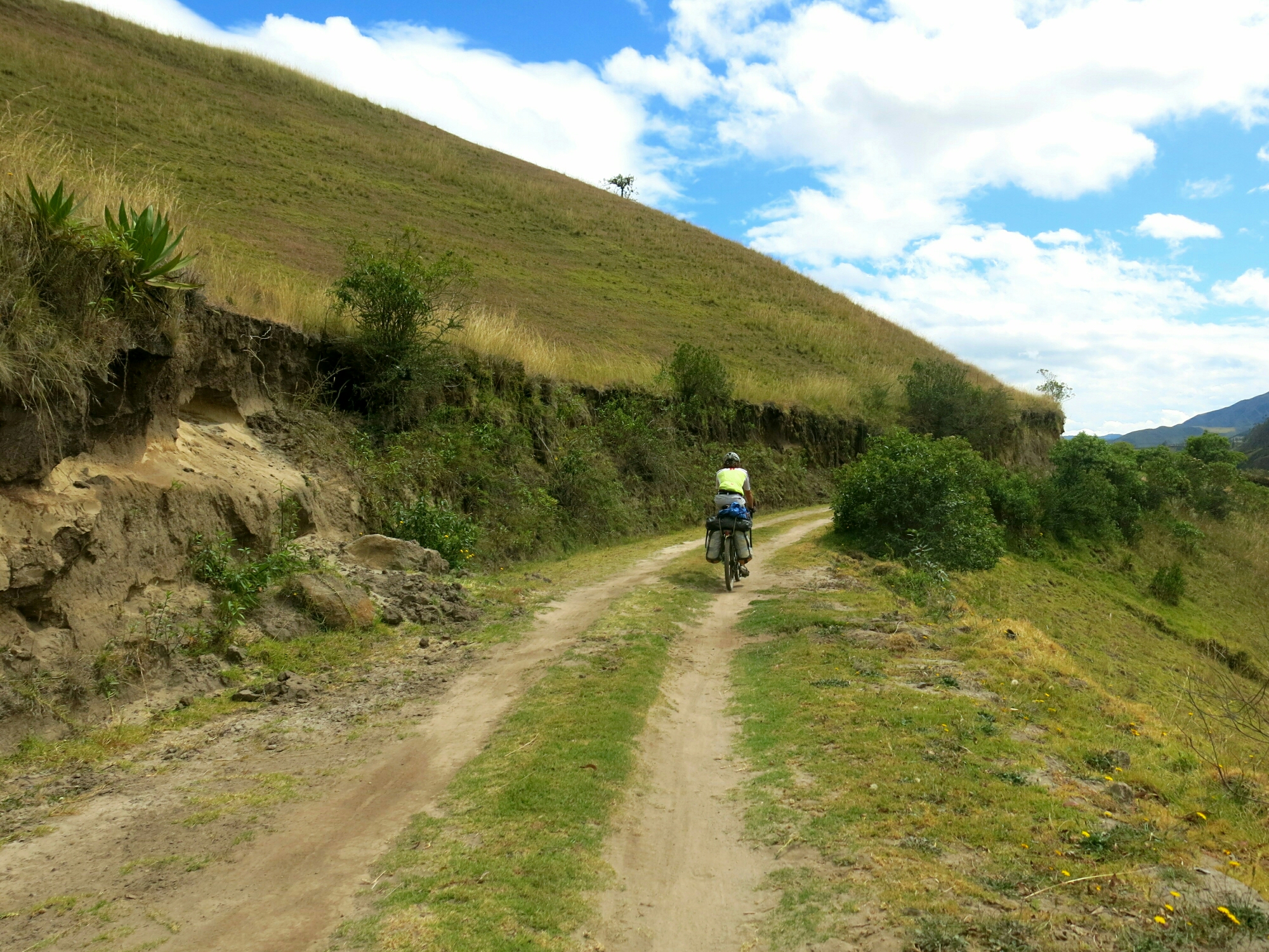 Middle section of Ecuador: fantastic, feels like the start of the true dirt Andean riding. Leaving the Casa de Ciclistas, point the bikes in direction of Volcano Cotopaxi, just look for the snow-topped come sticking out of the ground in the distance. And hope it’s not enclosed by clouds, though those too are white so you’re still looking for the same color. Leave Cotopaxi and start the Quilotoa Loop, a circle meandering through small villages high up on mountain slopes. There are paved roads connecting this loop; avoid them! The dirt roads sweep you up to 4000m and then drop you back off at 3000m, daily, except for that one day when you go down to 2100m and still have to make your way back to 4000m. By that time though you’re off the Quilotoa Loop and heading southbound, to riding right along the edge of the mountains. Look west and see the sea of clouds blown off the ocean abutting right up against the mountainsides, below you. Look east onto the patchwork fields comprised of all different shades of green. Colors start to fade when you climb high enough in the mountains, barren desolate fields owned by grazing alpacas and sheep. Ecuadorian summer is the dry season, so the only moisture appears when you’re riding through the cloud layers, but the wind is a fierce force howling down on you. Sunburnt noses and chapped lips are the marks of victory.