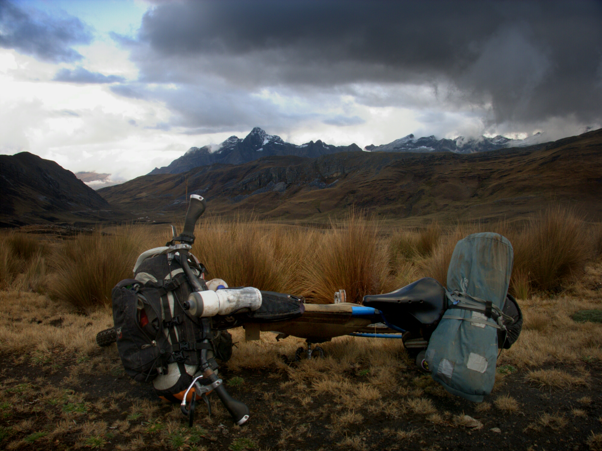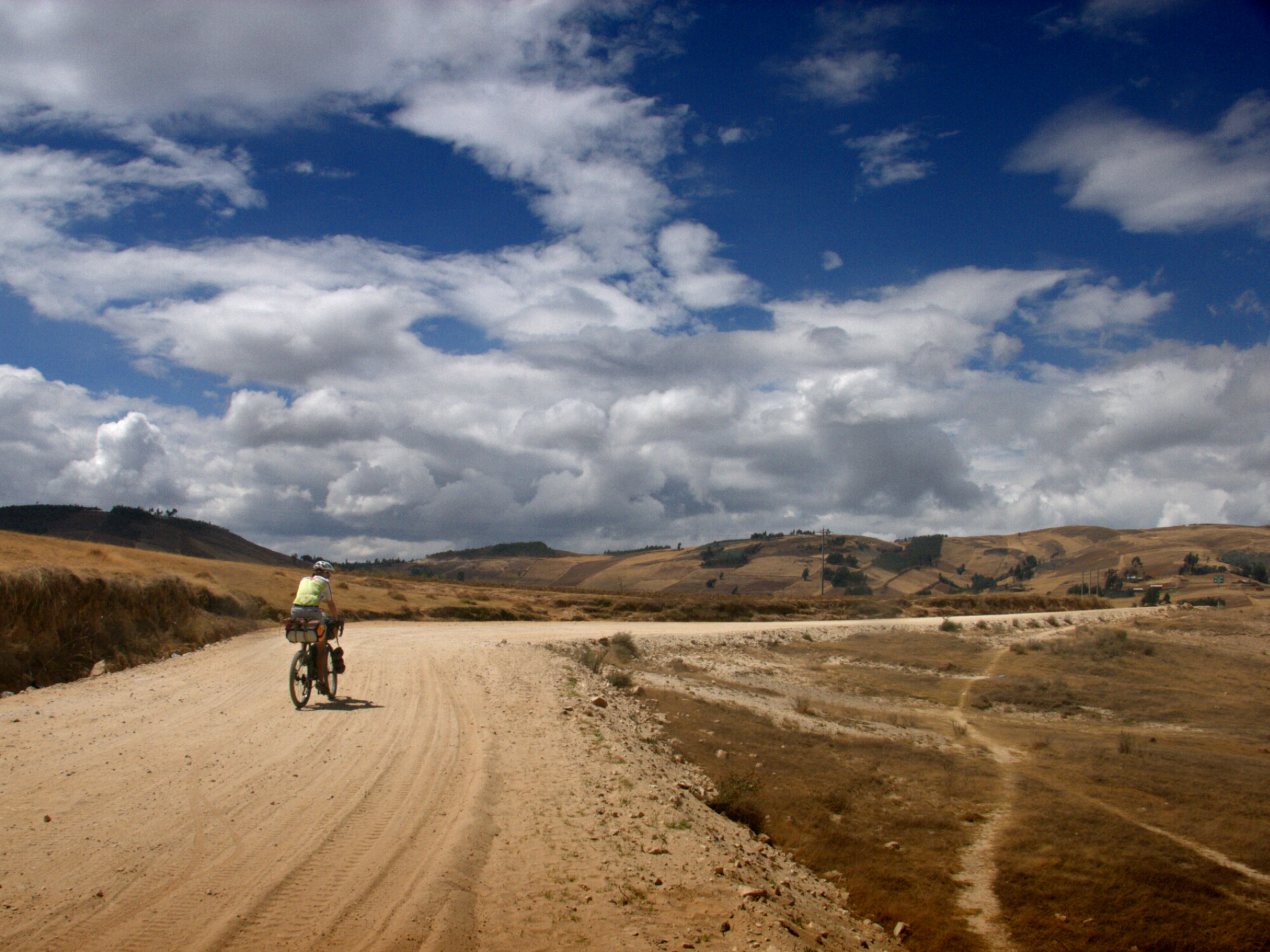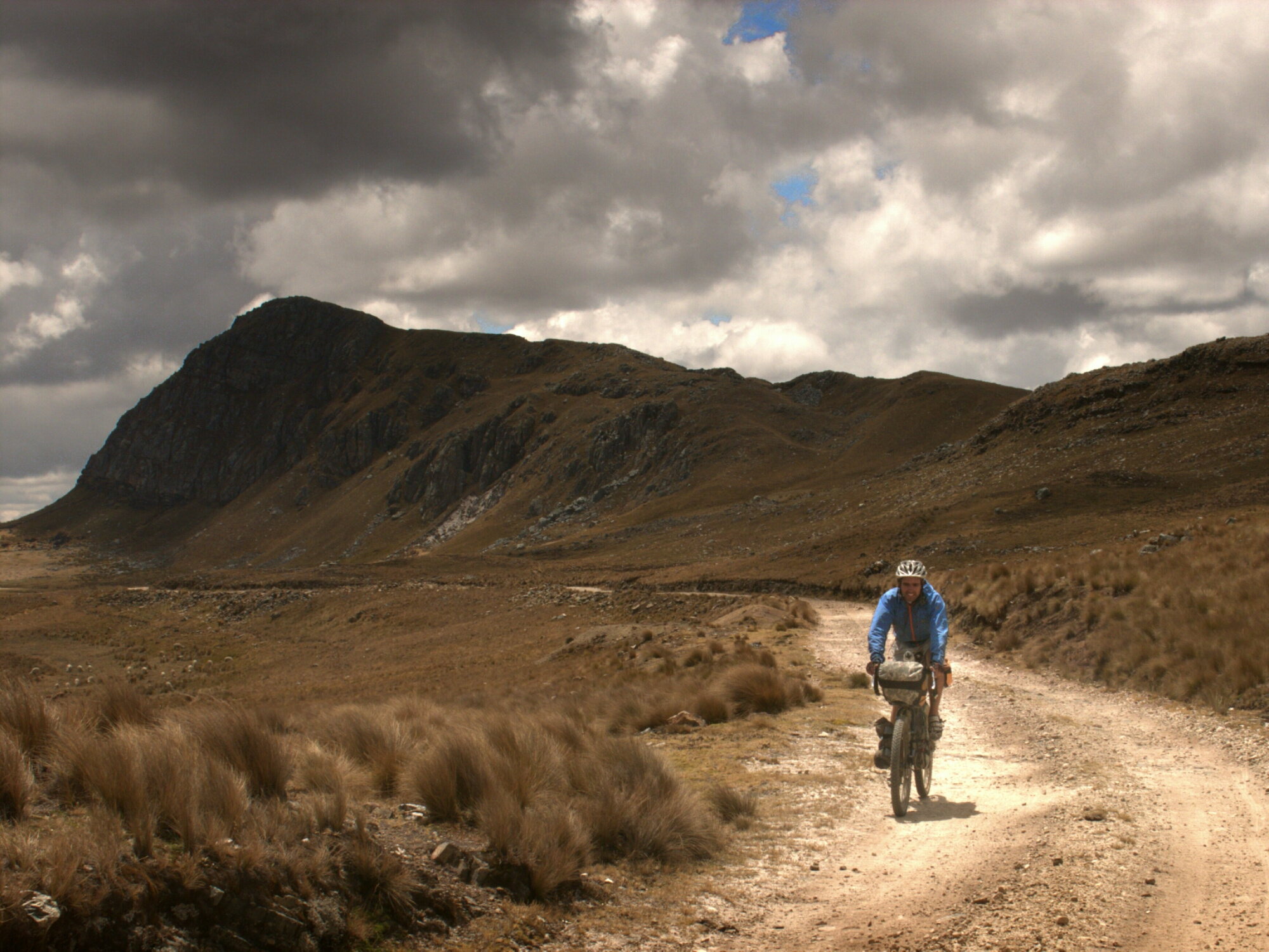 imageFirst through valleys and white clouds and, unpictured, angry bulls. When on a remote road and you round a corner to see five farmers yelling and screaming and trying to coax a grunting charging bull towards you… really just try to avoid these situations. I moved off the road far enough away to let them pass, but apparently didn’t move the bike far enough away, so as soon as the farmers let the bull go he charged right for the bike, entangled himself in the front wheel, and then they both went somersaulting down the hillside. Not a great sight to see your bike bouncing beneath the full weight of a bull. Miraculously the only significant damage was a bent front disc brake rotor; but for one more week of high altitude riding to Huaraz who needs front brakes?