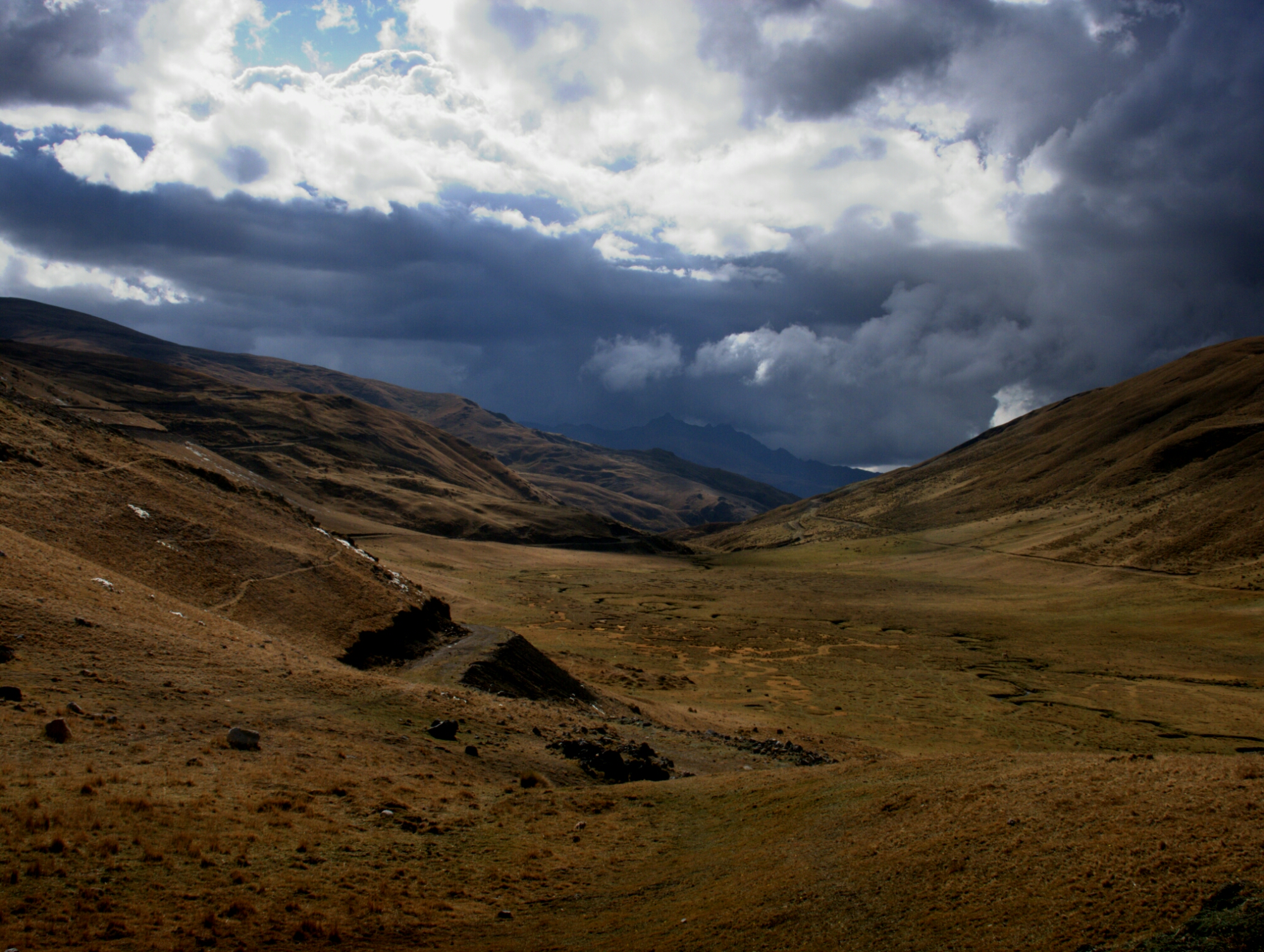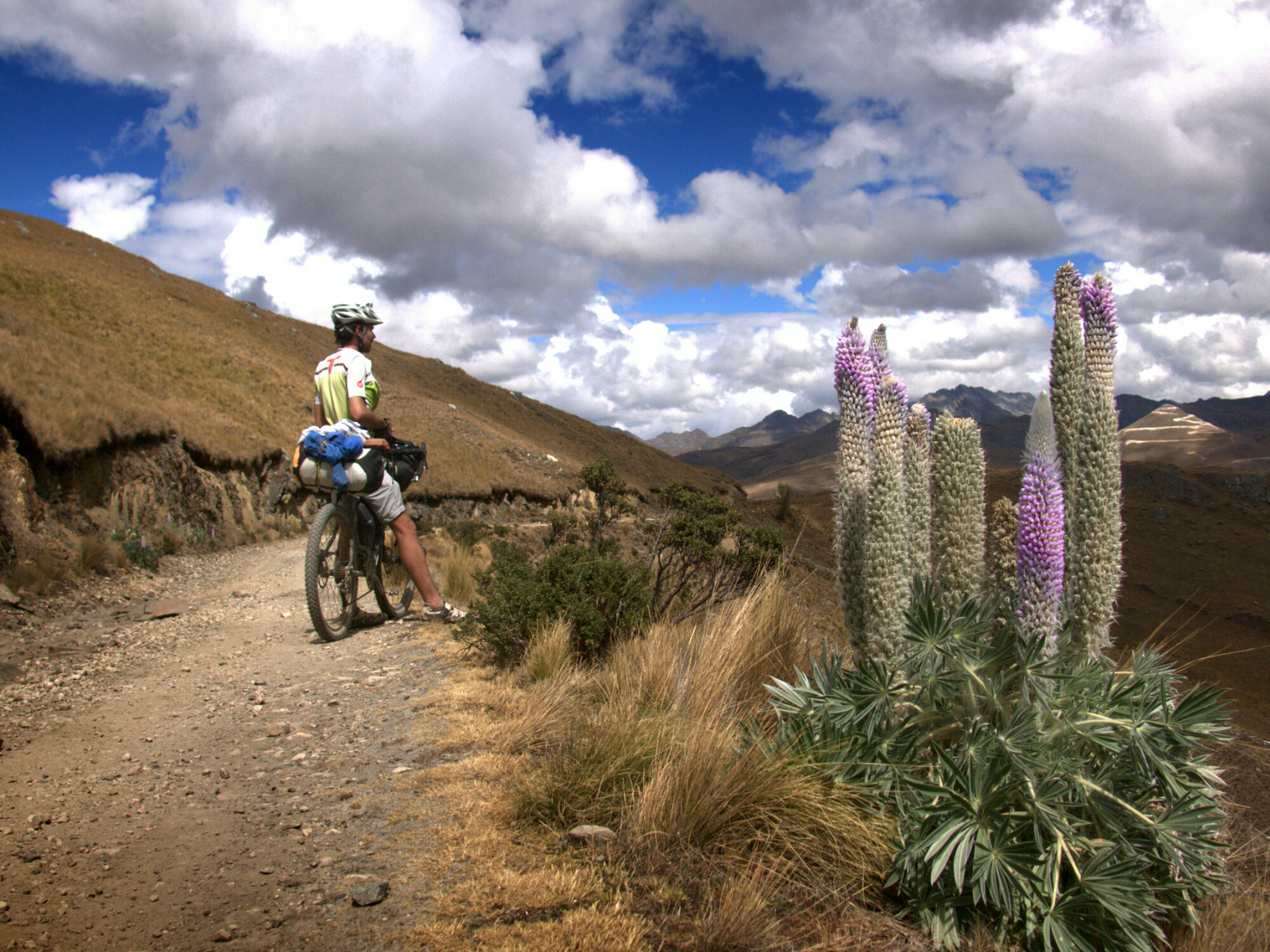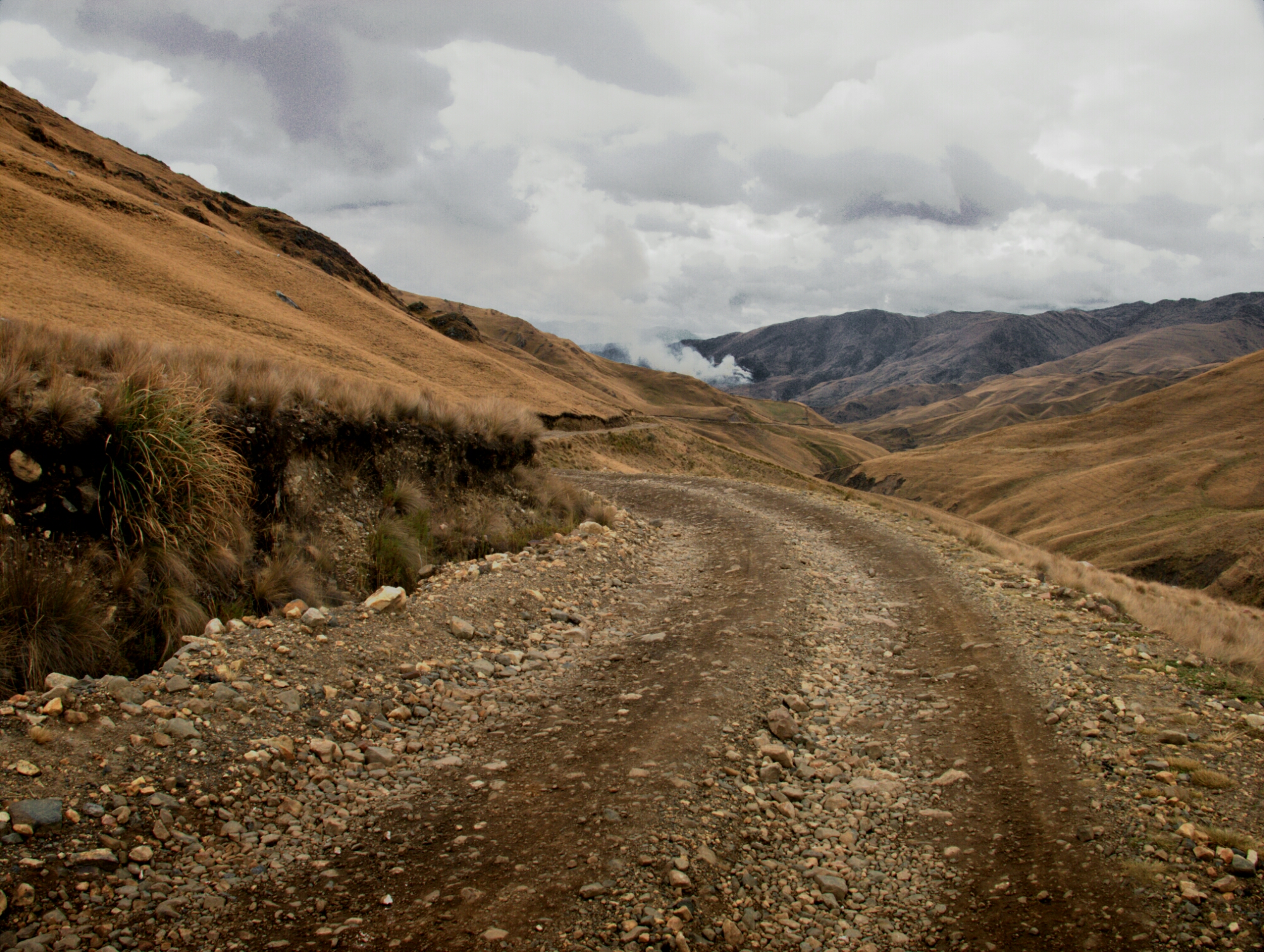 imageFirst through valleys and white clouds and, unpictured, angry bulls. When on a remote road and you round a corner to see five farmers yelling and screaming and trying to coax a grunting charging bull towards you… really just try to avoid these situations. I moved off the road far enough away to let them pass, but apparently didn’t move the bike far enough away, so as soon as the farmers let the bull go he charged right for the bike, entangled himself in the front wheel, and then they both went somersaulting down the hillside. Not a great sight to see your bike bouncing beneath the full weight of a bull. Miraculously the only significant damage was a bent front disc brake rotor; but for one more week of high altitude riding to Huaraz who needs front brakes?