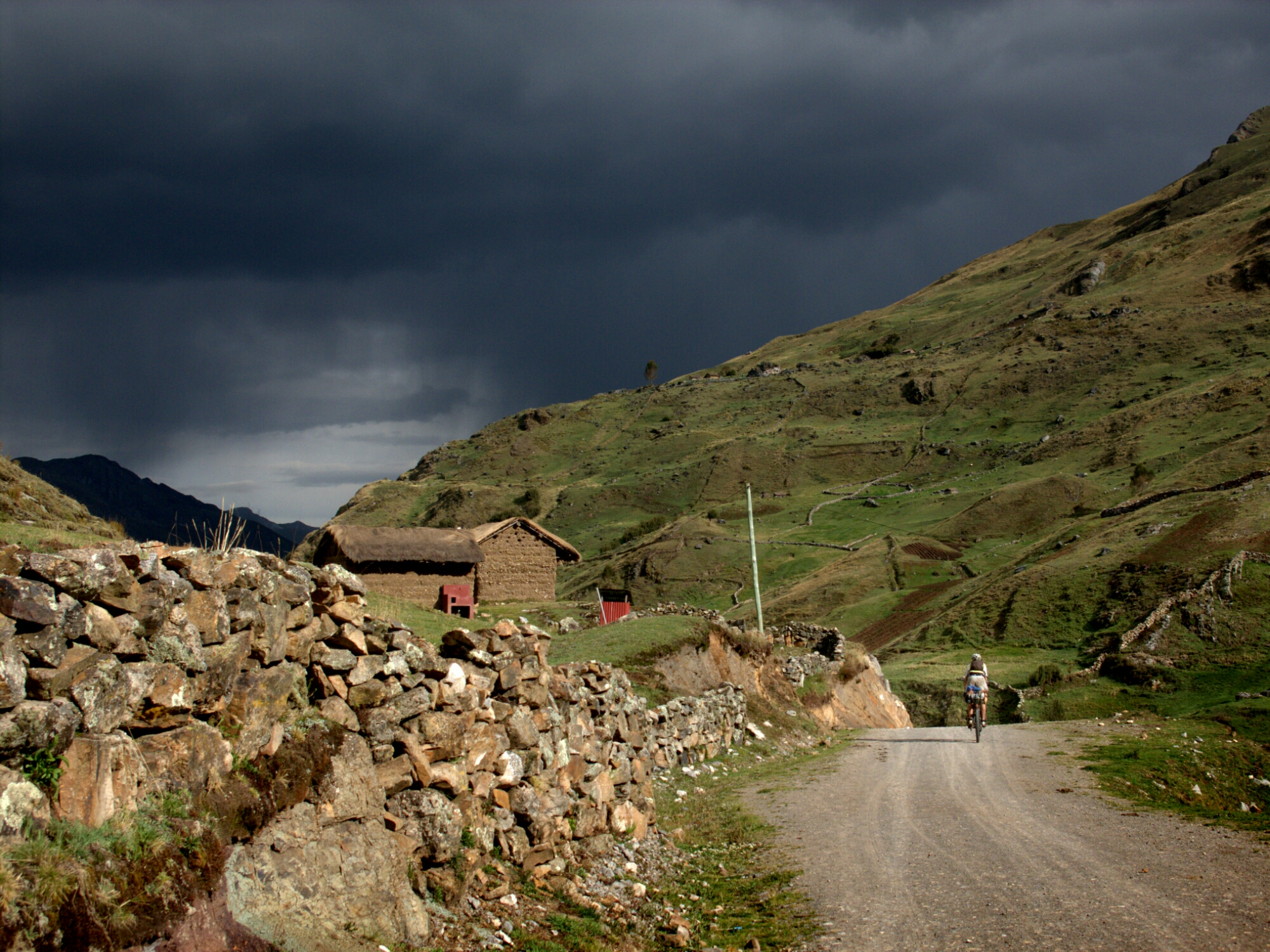 From the Cacananpunta pass, spot the dirt road along the river in the valley below. Ride the trail (yes, actual bike riding for sections of the descent) down to a low point by the river, cross over and jump onto the dirt road. The Huayhuash stint is now over, and taking a right on this blissfully perfect dirt road sends you careening down to Queropalca. Hospedaje, restaurants, and stores await.