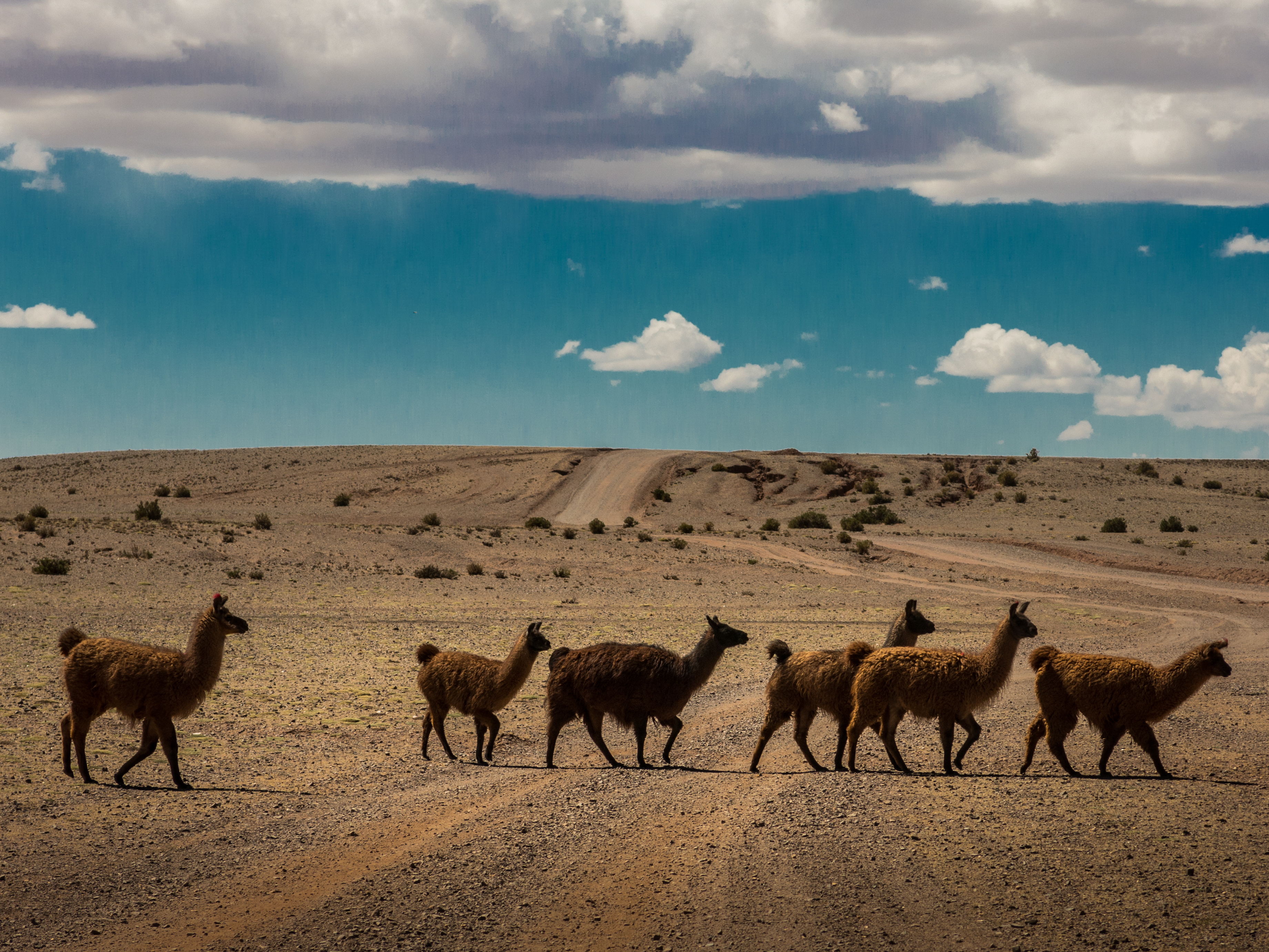 After San Vicente face the emptiness between passes. Occasionally there’s a water source, and there too will be a family of llama and alpaca herders. Both of these animals provide wool for clothing and meat to eat, though the traditionally farmed quinoa here has been replaced from local diets as the grain’s popularity grows in developed nations. Vegetables simply don’t exist, hunting for them in small town stores is inevitably… fruitless…