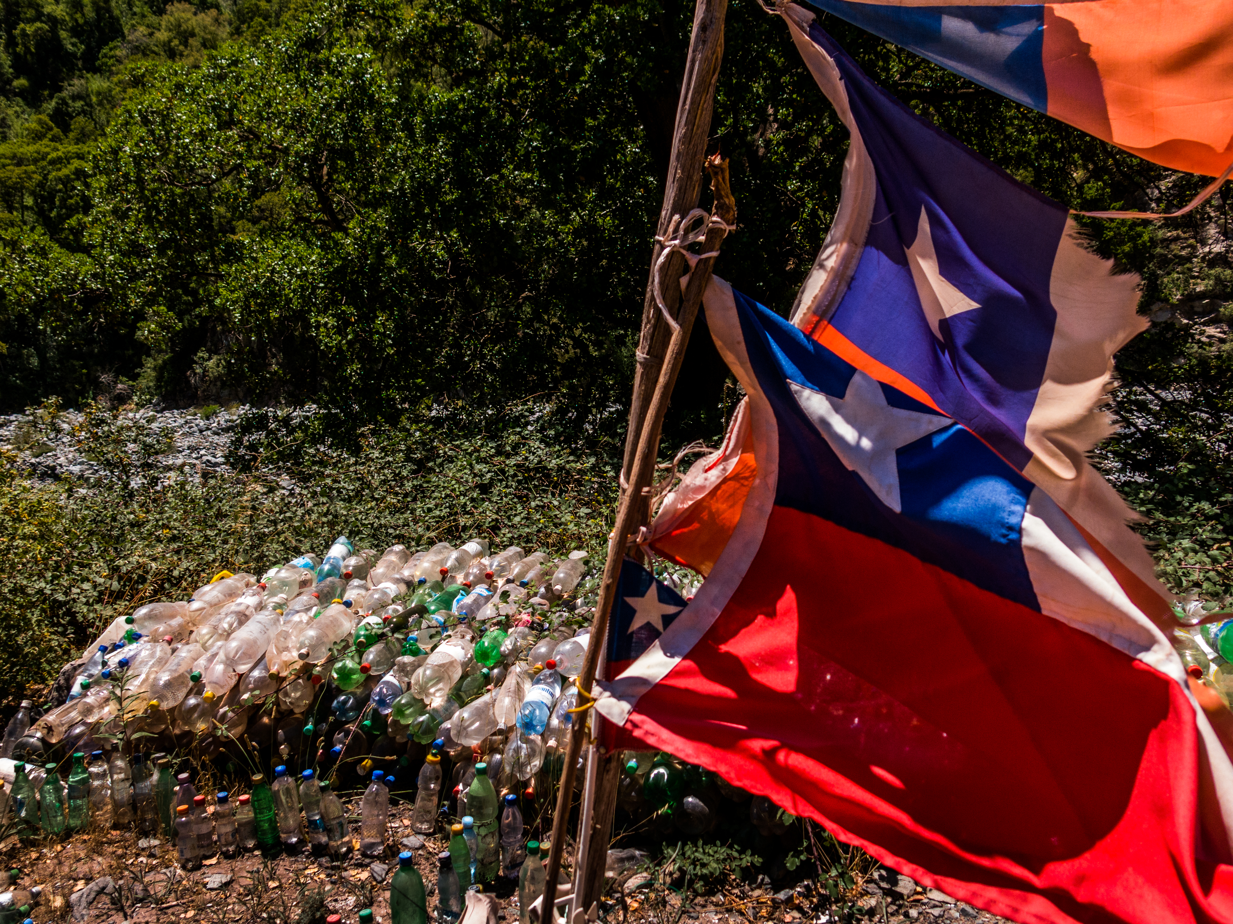 But this is still Latin America, shrines still line the roads. Both Chile and Argentina have a large tradition of popular shrines to La Difrunta Correa, a woman who set off to find her sick soldier husband, with their young baby in tow. She died en route, but the baby survived, and now a proper way to honor her is to leave a bottle of water at one of her shrines. When needed, the shrines also give thirsty cyclists holy water nourishment.