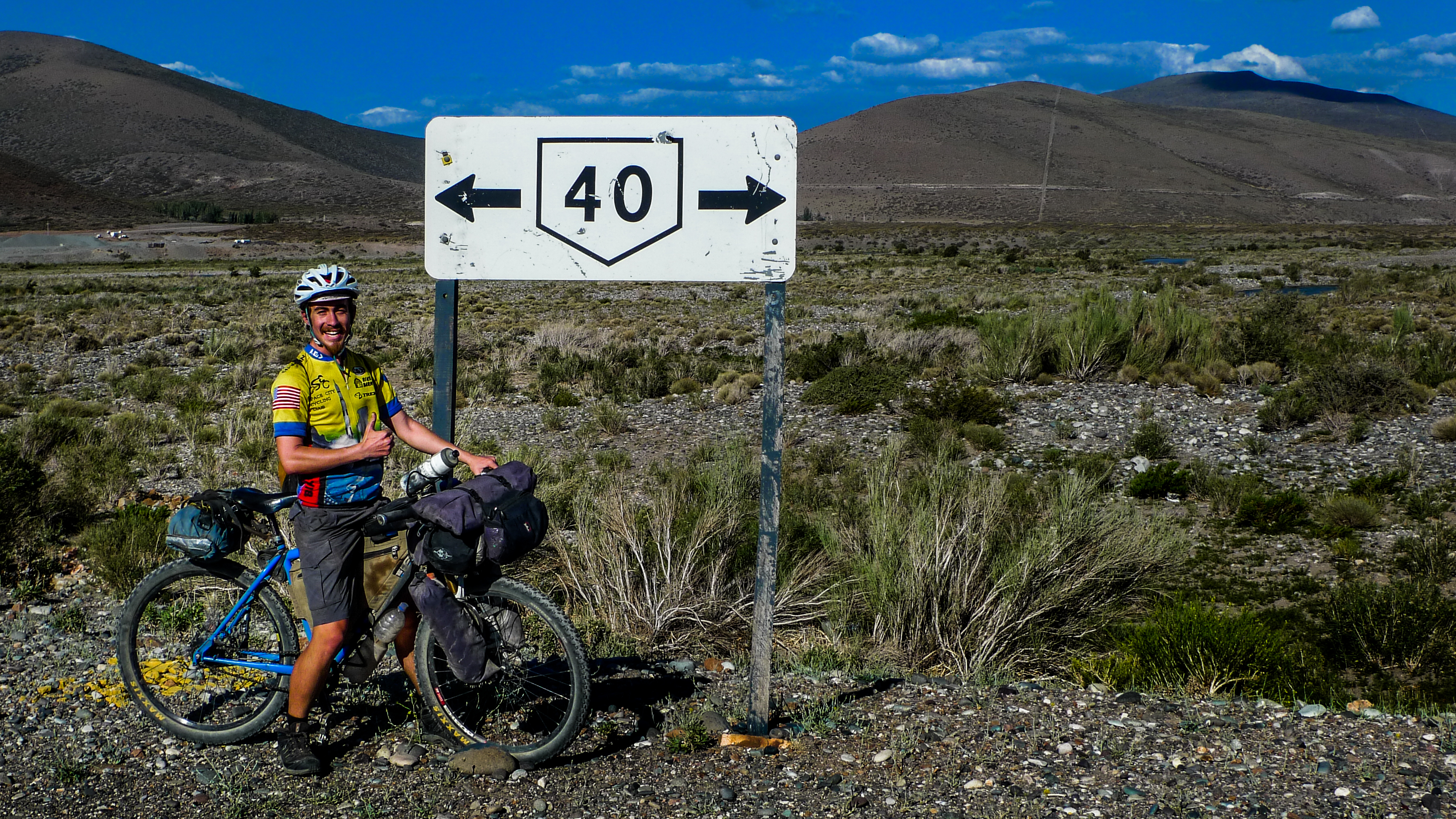 Deposited from the mountains onto Argentina’s famous Ruta 40. The 40 runs north-south along the Argentinean side of the Andes, and, comparable to the US’s Rt. 66, it’s a popular road-trip destination for motorists from across the globe. Roadside kilometer markers show the distance left to the southern end of the 40, under 3000km to go. There’s say 500km from the 40’s end to Ushuaia, so for anyone looking for the shortest distance left to go, there it is, only somewhere around 3500km left. But for Lee and me and Paul and most of us, there’s still a few more detours planned. There’s still another few months left. (Photo by Lee Vilinsky)