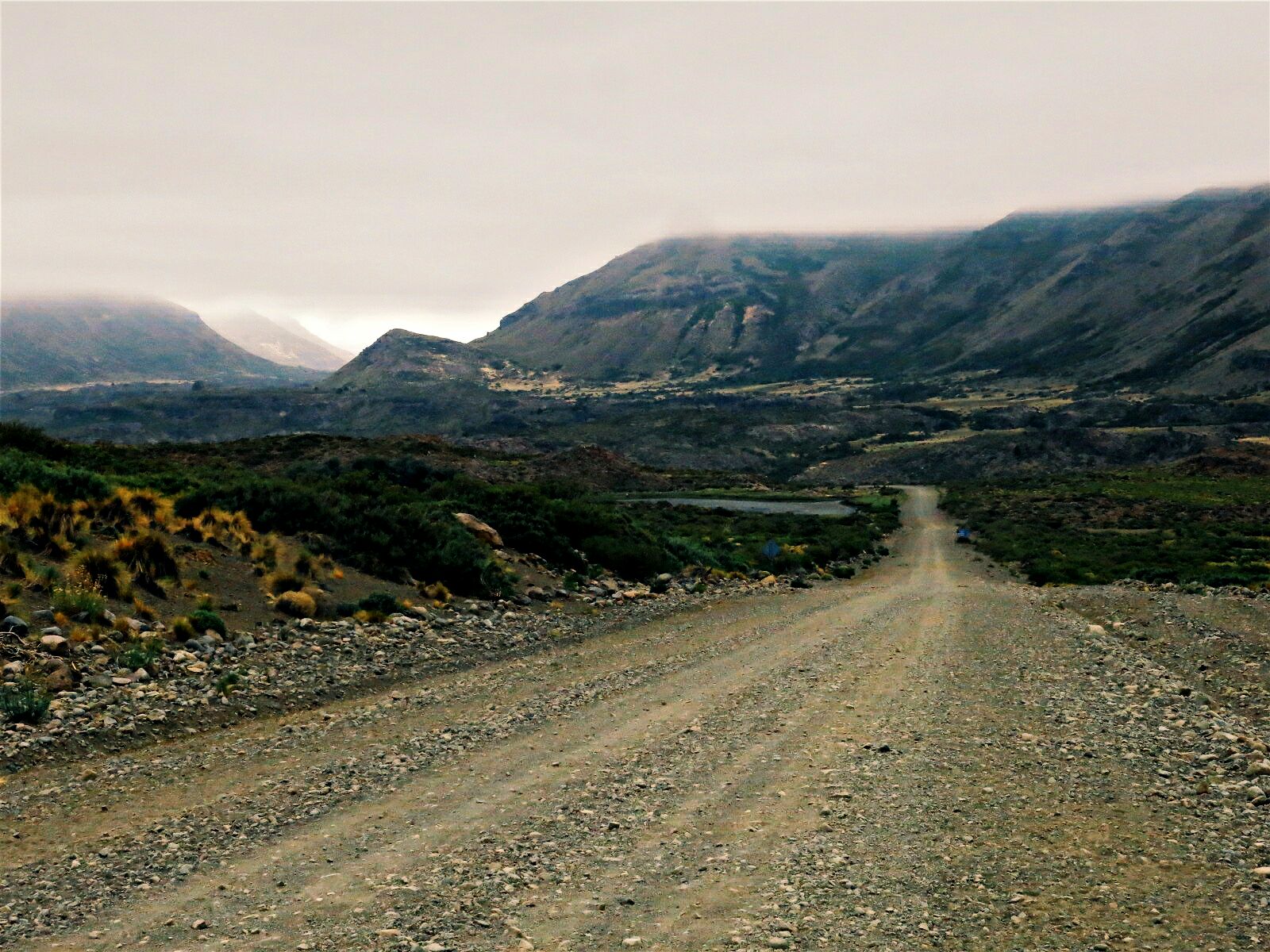 Loose gravel road, spend two days watching the roof of clouds cling to the mountain tops, wondering if it will burn off tomorrow before we climb up to those heights. Hoping but not really expecting, then we wake one morning to blue skies, pleasant surprise.