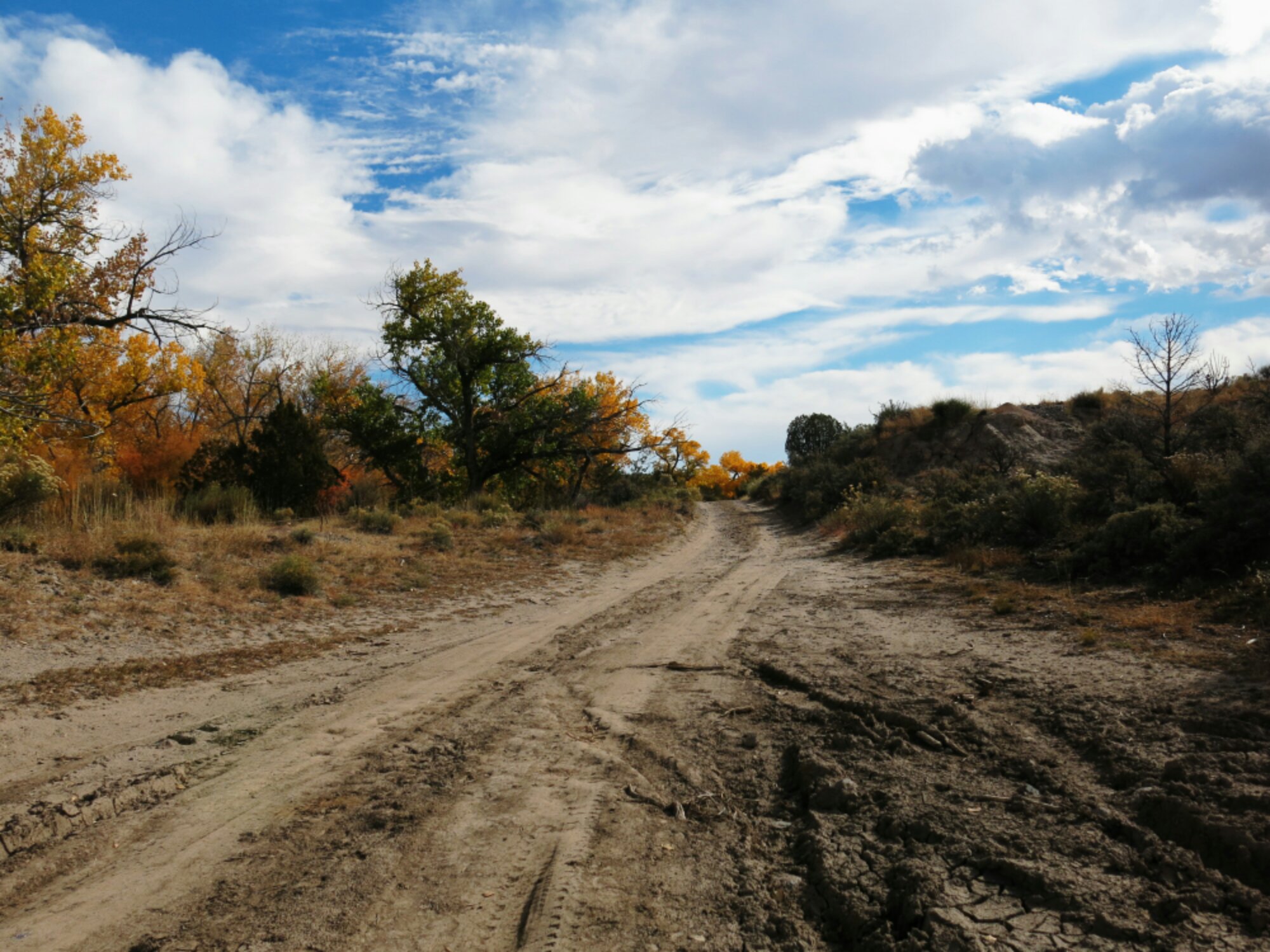 When the road turns to sand, wider tires are better. Here I probably should have let more air out to make the going easier.