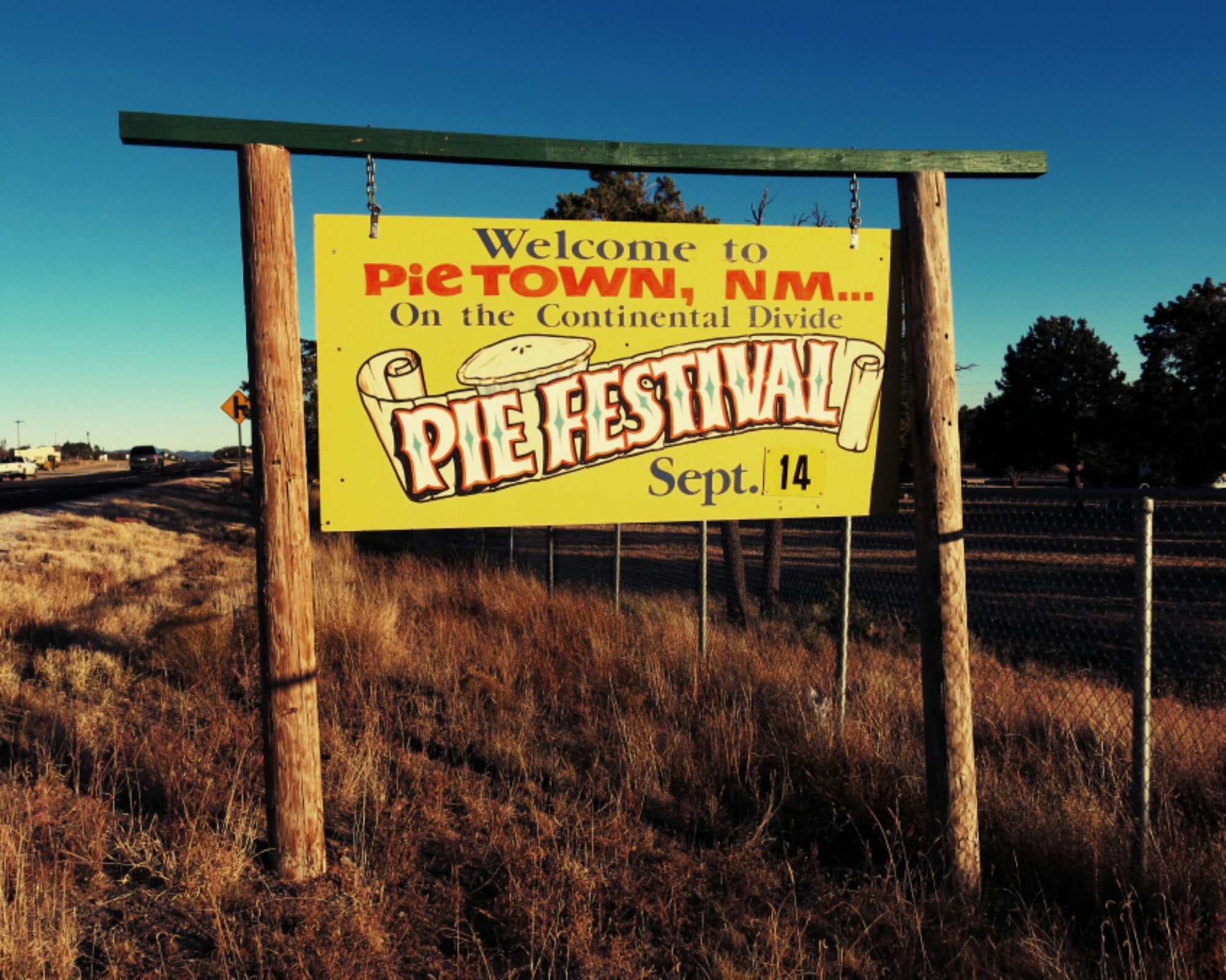 Heading for Pie Town, my final destination on the Divide. Getting close. Pie Town is home to two cafes renowned for their pie, of course. Legend has it the town was started when an entrepreneur found out a highway was coming through the area, and decided to sell pies to the travelers coming through. Now there’s a huge festival dedicated to the pies earlier in the fall, but a well-connected community lives there the rest of the year. One woman, Nita, leaves a house open for all the bikers and hikers coming through, making the town a great meeting and resting place. The pie certainly helps, too.