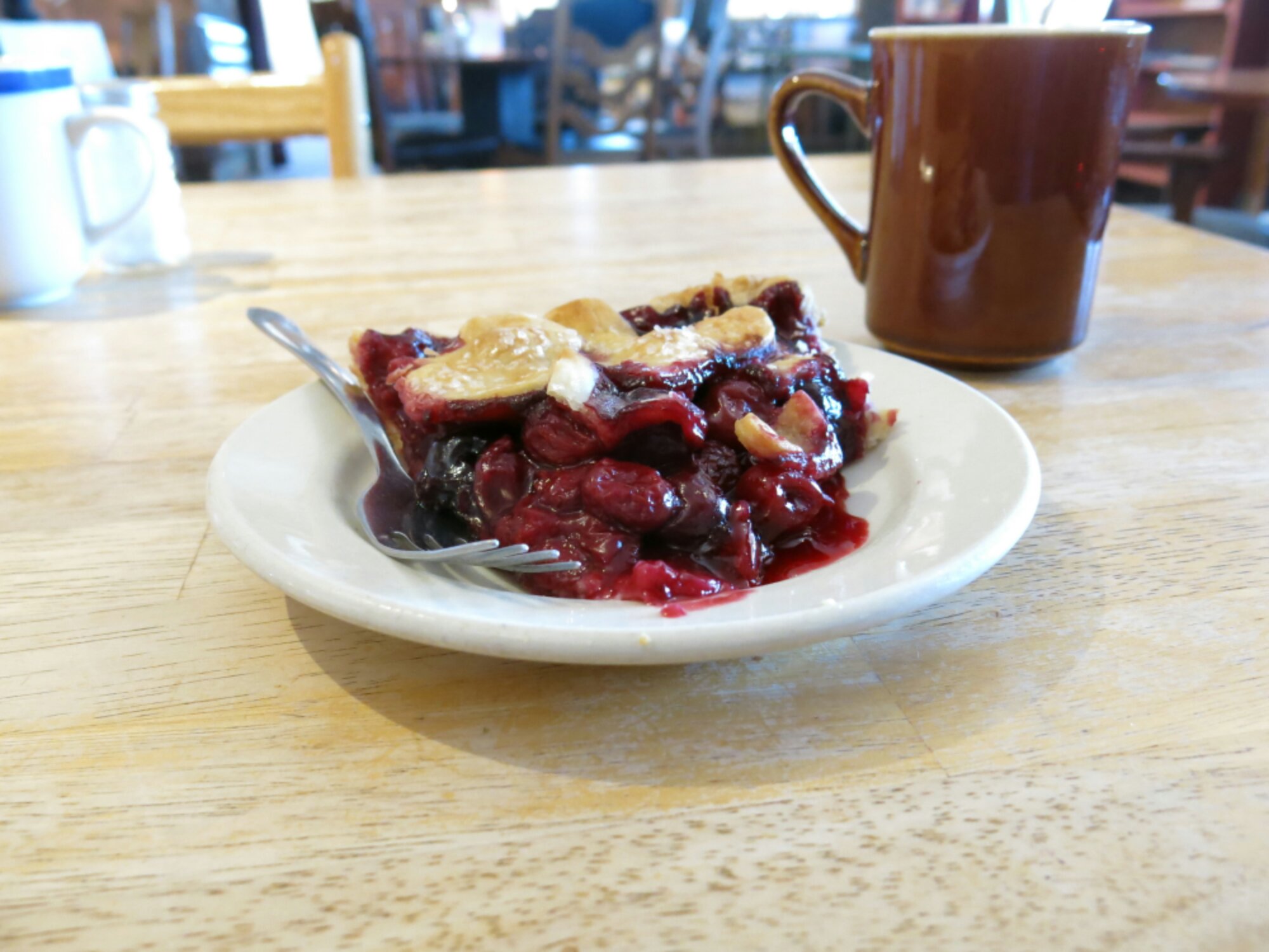 Sampling the delights at the Pie-O-Neer Cafe. A slice of cherry to start…