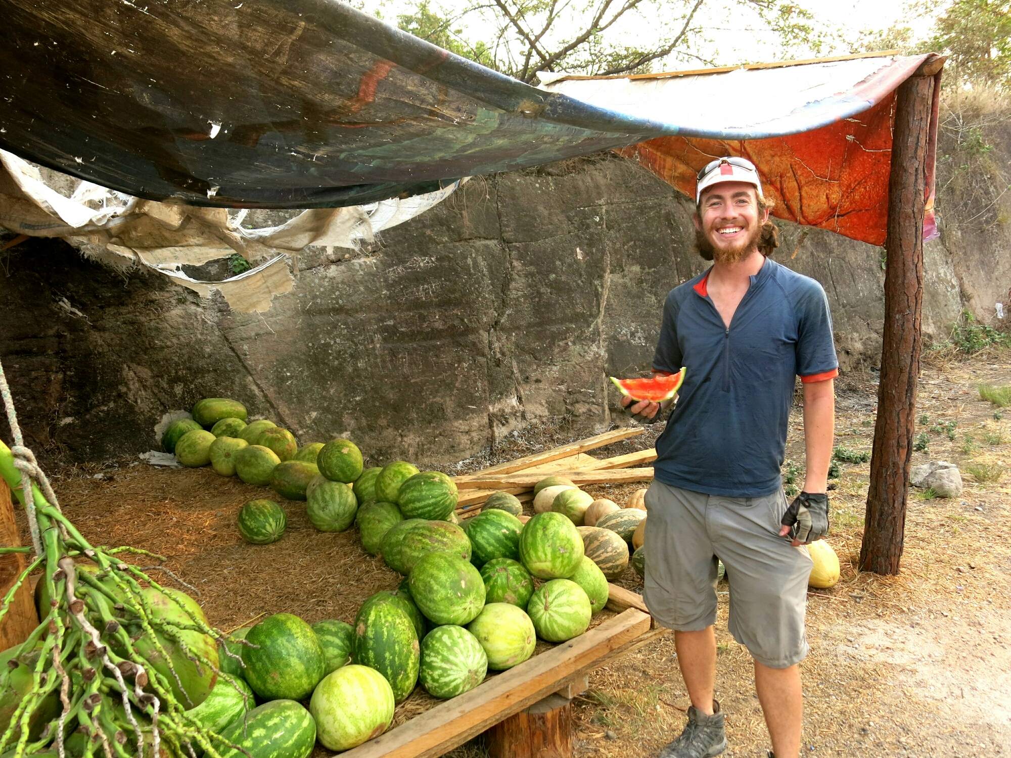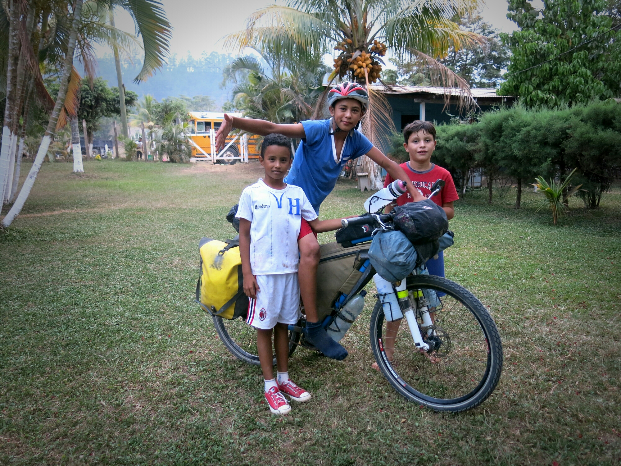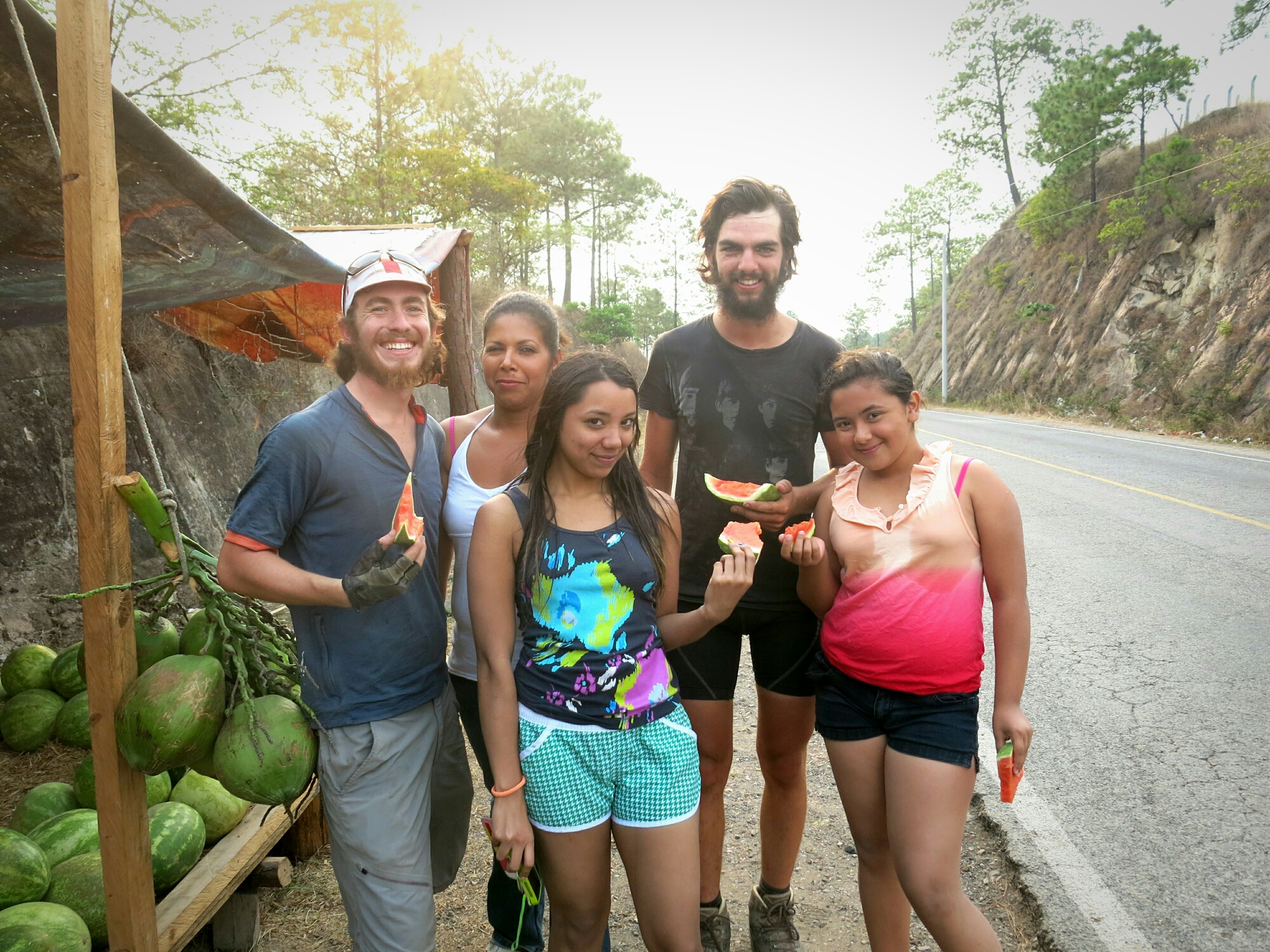 One evening, following a long day of near continuous tire punctures (bad glue? Bad patches? Too hot weather? Cause still unknown), we were asking around in a small village about possible places to eat and sleep. José and his sister offered us a place. On a beautiful farm, full of fruits, they gave us mattresses and a cabin for the night, used to sheltering people that their pastor father brings around. A fun meet-the-family evening.